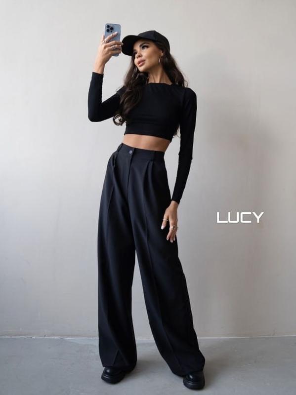 Брюки ▫️ Тканина: костюмка ▫️ Колір: чорний ▫️ Розмір: 42-44, 44-46 Дуже модні штани, додадуть вашому образу гарний стиль. Ззаду на поясі є гумка, яка додає зручності та комфорту
