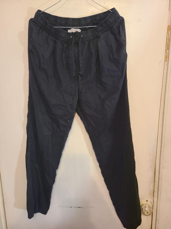 Полуобхват талии 36-39 (резинка) длина по боковому шву 93,по внутреннему 68,штанина низ 17,полуобхват бедер 58,посадка перед 29,легкие,материал-тэнцел.