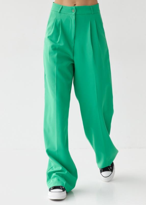 Справжня класика ділового стилю — штани прямого крою зі стрілками. Пікантно облягаючі стегна, які мають однакову ширину по всій довжині, виглядають елегантно і стримано. Втачний пояс йде без резинки, з петлями для ременя, і спереду застібається на гудзик і потайну блискавку. У бічних швах розташовані зручні прорізні кишені, ззаду вгорі є вертикальні виточки, а спереду є невеликі складки, від яких по всій довжині йдуть декоративні стрілки. Штани прямого крою підійдуть дівчатам з будь-яким типом фігури. Стрілка подовжує ногу, а вільний крій допоможе приховати недоліки литок. У цих стильних брюках ви зможете відправитися і на роботу, і на прогулянку, і на свято. Просто доповнюйте їх гарною блузкою, модною кофтиною або топом.