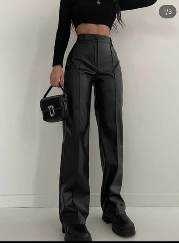 Штани з штучної шкіри, розмір М, заміри на 2 фото, нові з біркою, брала собі особисто але не підійшов розмір.