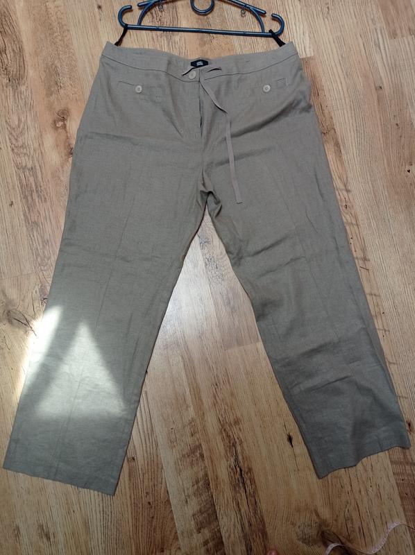 льняные лёгкие брюки. не были в носке. 18 размер. песочно-серый цвет, стильный. талия 49. посадка 28-28.5. длина 98.5. Бедра ~59.