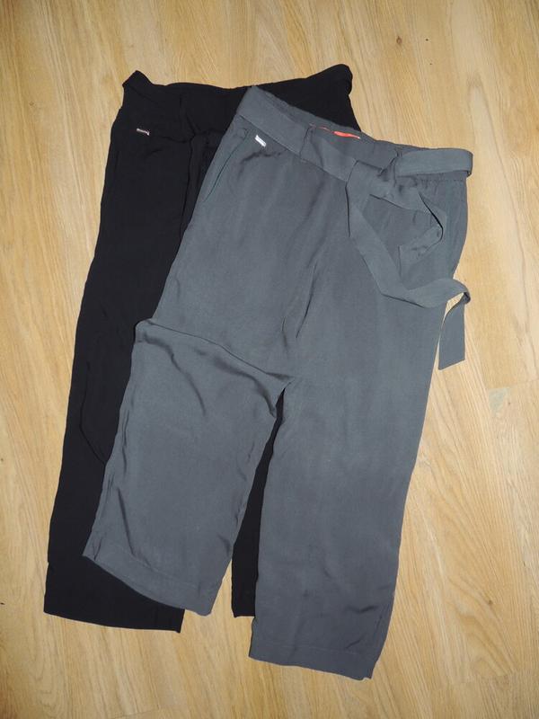 в идеальном состоянии как новые,цвет насыщено черный, ткань матовая, приятная на ощупь, вискоза, падая,не просвечивается, не парит длина 91см пояс 37см- в спокойном состоянии, сзади резинка - 46см крок 62см бедра 46см ширина штанки внизу 24см В наличии в таком же размере кюлоты черного цвета