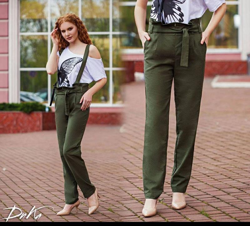 Штани на лямках Модель №с41277 Хакі-42,44 Чорний-42,44,46-1од Тканина:льон Пасок у комплекті Довжина-42-108+1см до кожного розміру