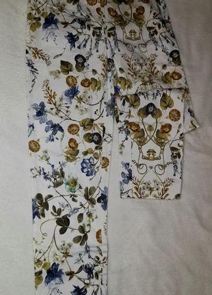 літні котонові брюки з цікавим рослинним принтом. Стан ідеальний. Заміри: пот 34 поб 42 довжина 88 Обовязково ознайомтесь з умовами роботи магазину у розділі ПРО МЕНЕ