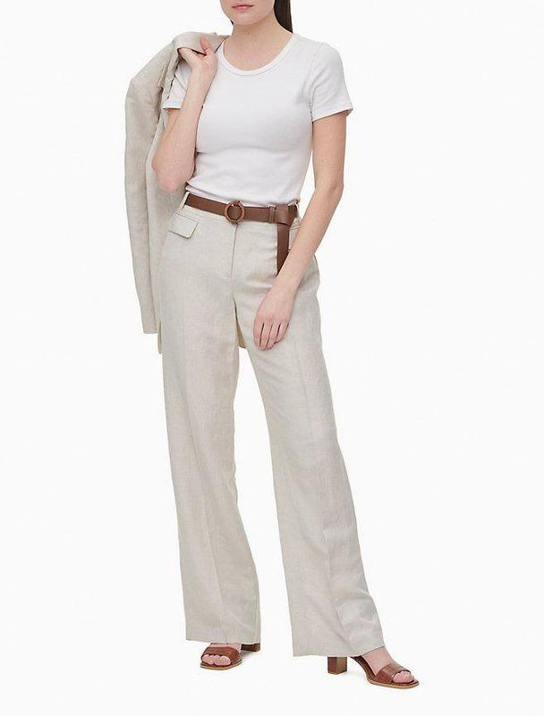 Брюки жіночі Calvin Klein Брюки женские Келвин Кляйн Джинс Оригінал Розмір: 2 (S) Колір: беж Посадка на таліі таліі, крій прямий Склад тканини: 55 % льон, 45% райн. Заміри: Пояс 40, поб 55, посадка 22\30, ширина бедра 31, ширина внизу 27 , довжина 103\82 см