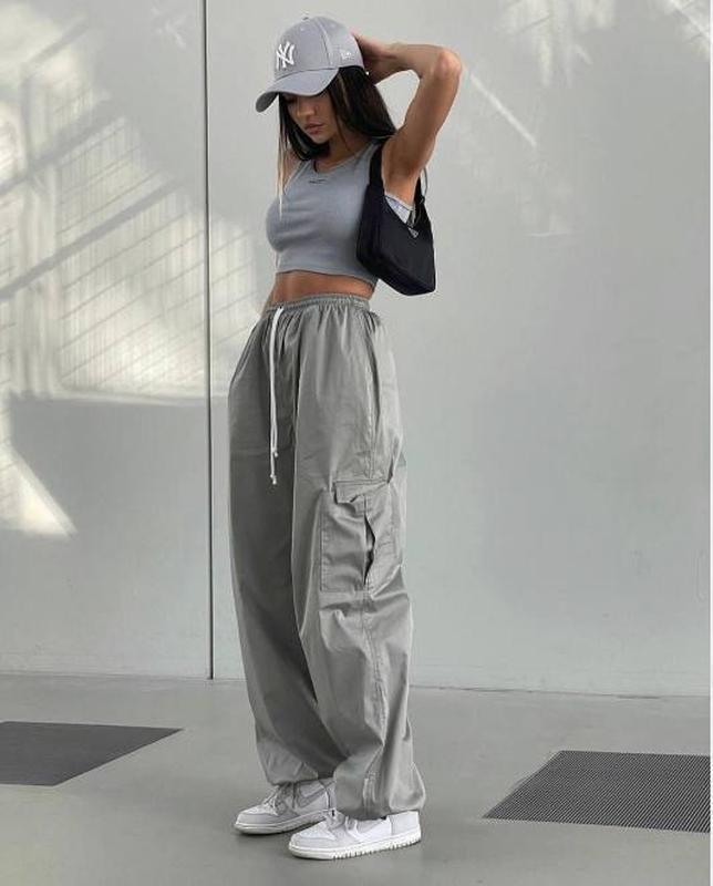 Новинка в наявності 💥 Фото вживу ✅ Штани карго ▪️Модель 229 ▪️Розмір 42-46 ▪️Тканина - плащовка Канада ▪️Колір - сірий, чорний ▪Ціна - 580 грн Класні широкі штани з плащовки , по боках та знизу дві кишені , низ штанів на затяжках з фіксатором 💥