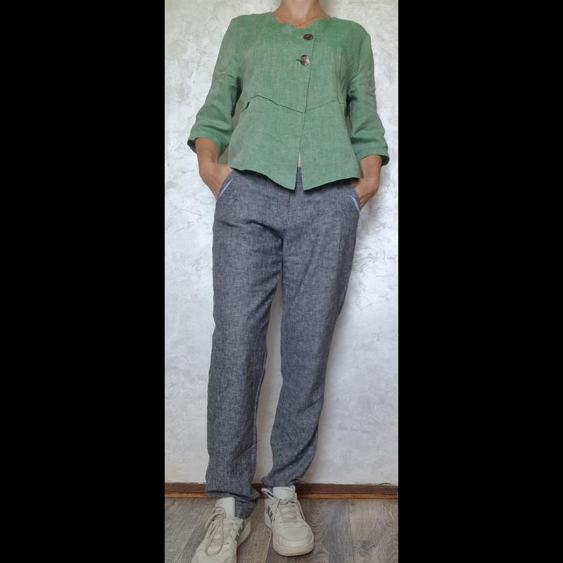 Штани льон KOOKAЇ, розмір 36-S. Вдягнуто на зріст 165см розмір М, на стегна 96, талію 76, до низу завужуються. Пот 40 По стегон 55 Довжина 97 Відправлю безпечною доставко за умови повної оплати на ШАФУ.