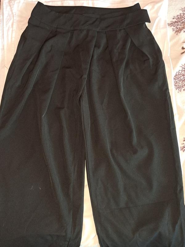 Широкі, класичні брюкі, чорного колькору , розміру XXL на дикоративному пояску з застібкою.