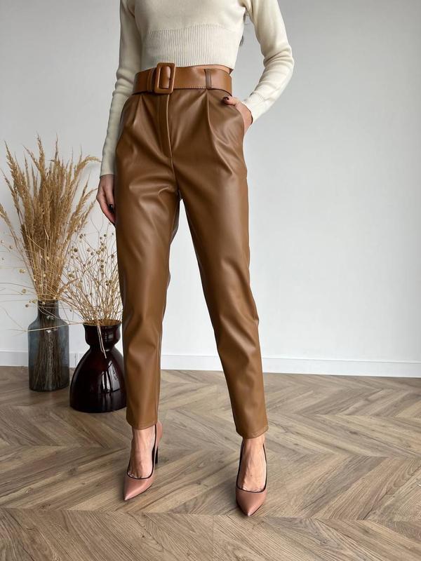 мо розміри: 42-44, 44-46, 48-50 Штани мод.549 тканина: матова шкіра на флісі колір:чорний, мокко , беж пояс у комплекті