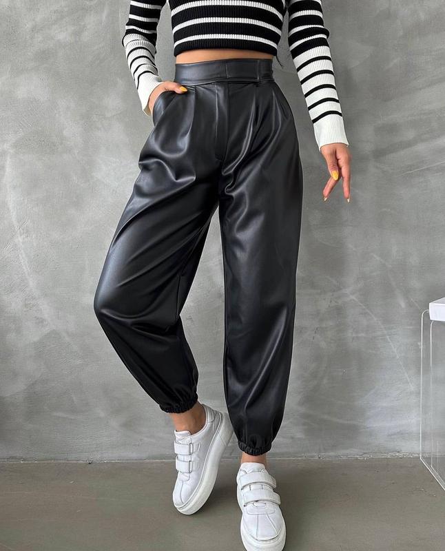 міа1.10🌿НОВИНКА🌿 Штани😍 Модель: 036 Розміри: 42-44; 46-48. Тканина: Якісна матова екошкіра з начосом🔥(Гарно тягнеться. В талії регулюються☝🏻) Кольори: Чорний, моко.