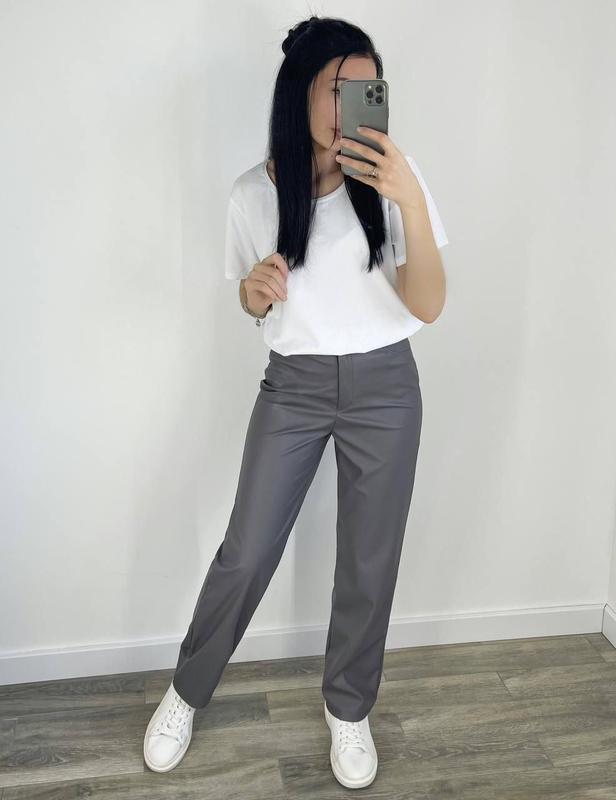 бл.фр.с. 💥💥 РОЗПРОДАЖ 💥💥 Штани ❤️❤️❤️❤️ Тканина екошкіра матова Колір мокко - розмір 42 Колір графіт - розмір 42 Штани застібаються на блискавку та гудзик, кишені декоративні