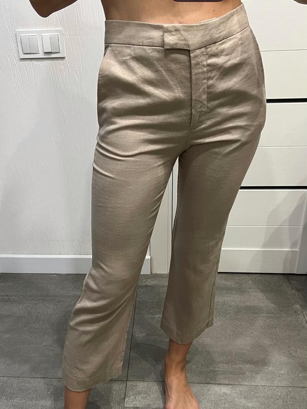 Нові, тільки примірка. Вкорочена модель. Льон. Розмір 34: ОТ 70 см, ОС 94 см, довжина 89 см, довжина штанини 63 см.