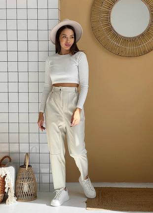 Одежда из эко-кожи не выходит из моды ✅ Стильные брюки из экокожи на замшевой основе ✨ Штани мод.снак Материал: эко-кожа на замше Размер 1.(хс-с) 2.(м-л) Цвет: черный, капуччино, молоко Замеры модель Размер 42-44 Талия 60-64 Стегна 102 Длина 98 Размер 46-48 Талия 76-78 Стегна 112 Длина 99