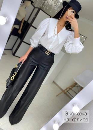 Штаны Модель 885/1885 Размеры 42-44, 46-48, 50-52, 54-56 Ткань экокожа НА ФЛИСЕ Турция 🇹🇷 Производитель Украина Трендовые брючки палаццо из экокожи на флисе, теплые и стильные Пояс на резинке, сбоку кармашки, шлейки под пояс Пояс в комплекте не идет •~•~•~•~•~•~•~•~•~•~•~•~•~