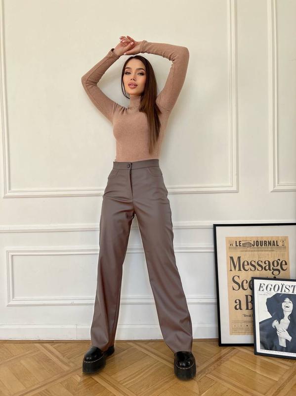Штани, фото реал ▫️Тканина: еко шкіра на флісі ▫️Розміри: 42-44, 46-48 ▫️Кольори: чорний, шоколад ⠀ Штани йдуть на високій посадці, вільного крою, що візуально робе ваші ніжки ще довшими і стрункішими. ⠀ Модель 117