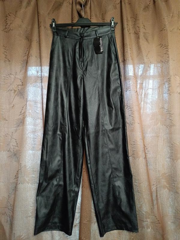 Брюки з штучної шкіри прямого покрою. Розмір М. Довжина 114 см, ПОТ 35 см, ПОС 45 см. Добре тягнуться.