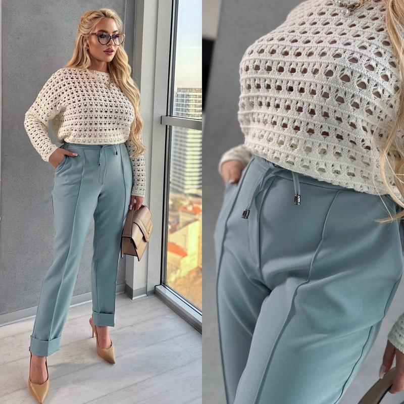 Модні , класичні брючки! Зроблені з якісного матеріалу , дуже гарної якості. Не кошлатится , не втрачає колір! Модель вільного прямого до низу крою з резинкою по спинці. Гарна фурнітура Мод. 268 Розміри : 50-52,54-56,58-60 Матеріал- костюмна тканина люкс якості (Барбі). Колір : молоко, чорний, оливка Заміри по вверх виробу , тканина має трохи розтяжність. иес 800.00