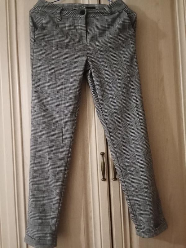 класичні штани в клітинку. збоку є кишені,з заду обманки. розмір на бірці 25, але тягнуться будуть на 26.