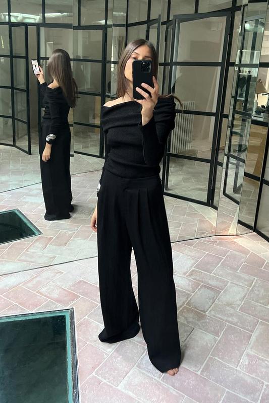 ШТАНИ ЗІ СТРУМУЮЧОЇ ТКАНИНИ ІЗ ЗАЩІПАМИ ZARA В наявності розмір М, L чорного кольору, нові, з бірками, оригінал 💫 Широкі штани з високою посадкою та защипами спереду. Застібаються на блискавку, внутрішній ґудзик і гачок спереду. Кишені спереду та резинка ззаду на поясі. Чорний | 8372/420/800 Заміри M: * напів ОТ 36 см, + резинка тягнеться * напів ОБ 55 см * довжина по внутрішньому шву 75 см, по зовнішньому 106 см * висота посадки 35 см * напів ширина штанини знизу 33.5 Склад 63% ліоцел, 32% віскоза, 5% еластан Заміри L: * напів ОТ 39 см, + резинка тягнеться * напів ОБ 58 см * довжина по внутрішньому шву 75 см, по зовнішньому 106 см * висота посадки 36 см * напів ширина штанини знизу 33.5 Склад 63% ліоцел, 32% віскоза, 5% еластан