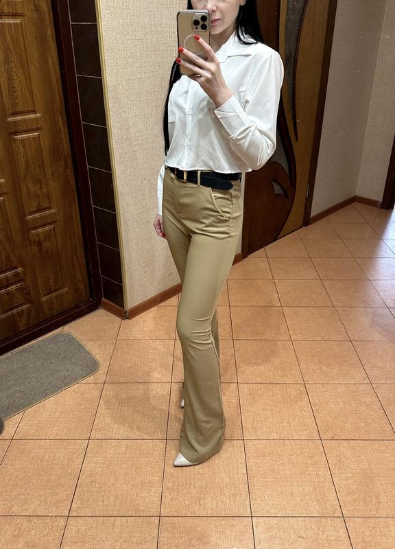 Брюки кльош бежевого кольору. Ефектно виглядають. Стан нових.