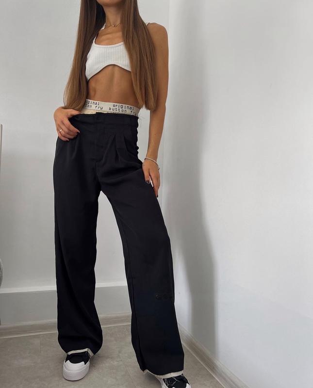 Трендові штани палаццо/прямого крою зі світло-бежевою резинкою
