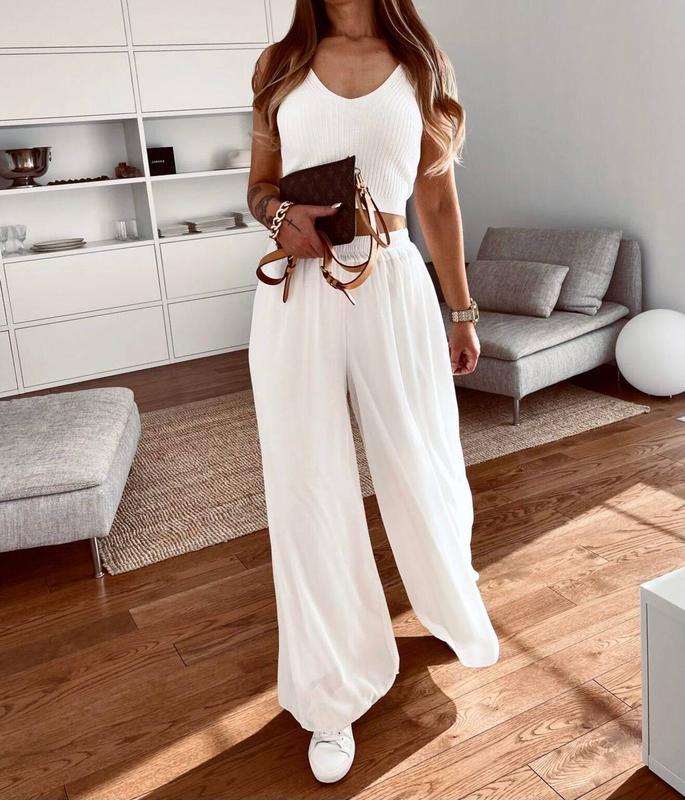Штани мод 636 Цена:900грн Размеры: 42-44 46-48 Свободного пошива, пояс на резинке, шифон в два слоя. Цвет: Оранж, белый, беж Тканина: шифон Отличного качества!