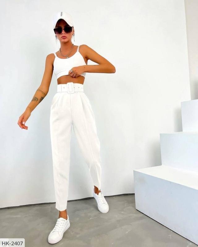 Брюки Розміри: 42-44, 46-48 Тканина: креп-костюмка Колір: чорний, молочний, рожевий, салатовий, Фуксія, малина, Помаранчевий пояс в комплекті