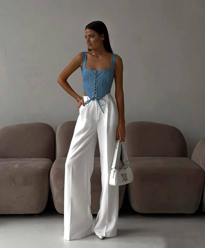 🖤 NEW 🖤 брюки ▪️мод 361 ▪️тканина : костюмка ▪️колір: молоко ▪️розміри: SM / ML Брюки палаццо ; Висока посадка , з кишенями ; Довжина штанів 110 см