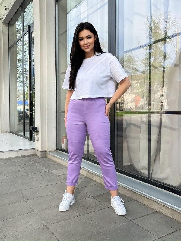 Штани Розмір: 46-48, 50-52, 54-56, 58-60 Тканина: котон полірований Колір: Бузок, м'ята, рожевий, персиковий, світло-ліловий На моделі 46/48 р Штани на гумці з високою посадкою, гульфик (змійка) обманка Заміри 46-48 ОС 100, ОТ 75/95, довжина 92 50-52 об 104, Від 80/100, довжина 92 54-56 об 112, ОТ 85/105, довжина 93 58-60. Про 120 ОТ 90/110 довжина 95 лр