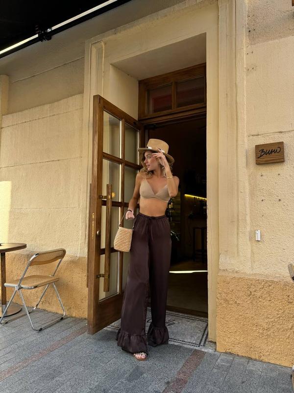 Шовкові штанці з воланом Шовк Армані, якість супер, дуже ніжні, приємні до тіла Якісний пошив Штанці на резинці та шнурок, завдяки йому можно регулювати обʼєм на талії Розмір С-М Та М-Л 1200 грн