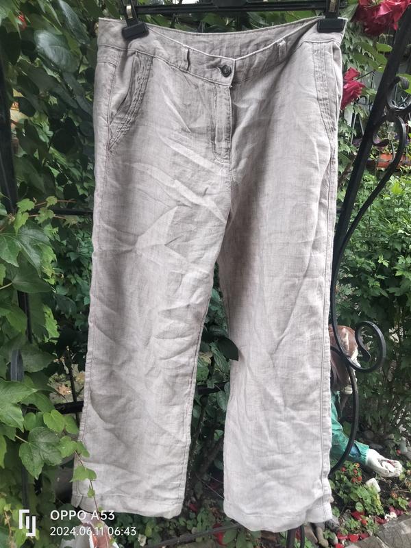 Класичні прямі брюки,колір натуральний сірий лляний,дві прорізні+ дві накладні кишені. ПОТ 42 ПОБ 56 Д 97
