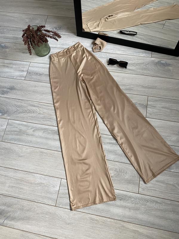 Брюки прямого крою з відблиском, є пояс і резинка Гарно відблискують Поліестер, еластан Довжина 112 см