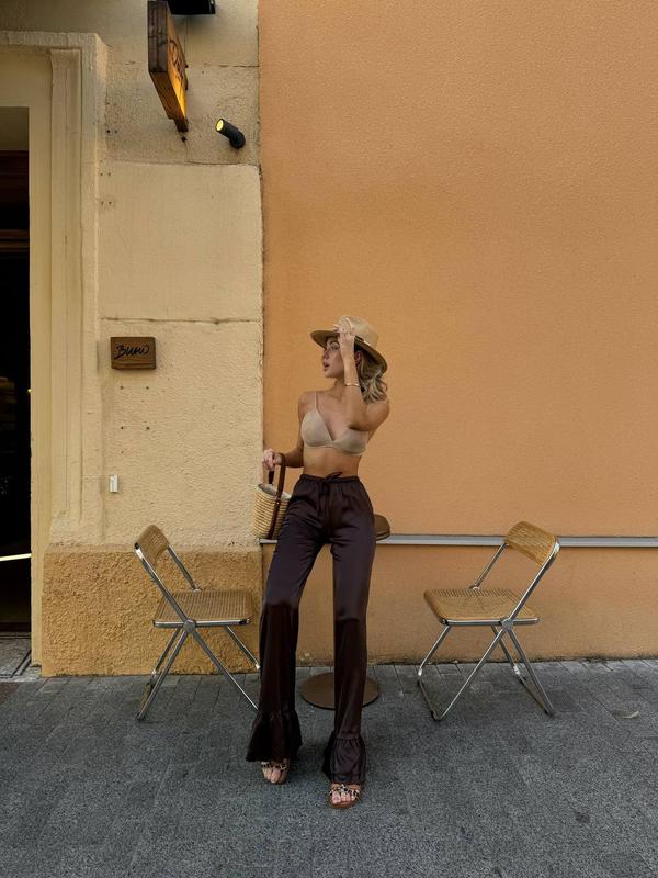 Шовкові штанці з воланом Тканина: шовк Армані, Розмір: S-M, M-L Колір: чорний, коричневий Ціна: 1100₴