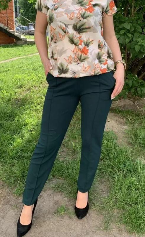 Брюки зеленого кольору. На обхват бедер до 86 см. Дивіться заміри. Тканина не тягнеться.
