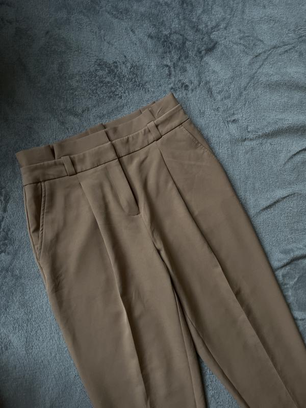 Брючки беж, висока посадка 30 см, пояс прикрашений невеличкою збіркою, все в міру, пот 37 см, поб 52 см,довжина 95 см. Виглядають супер, дуже якісні, приємні до тіла