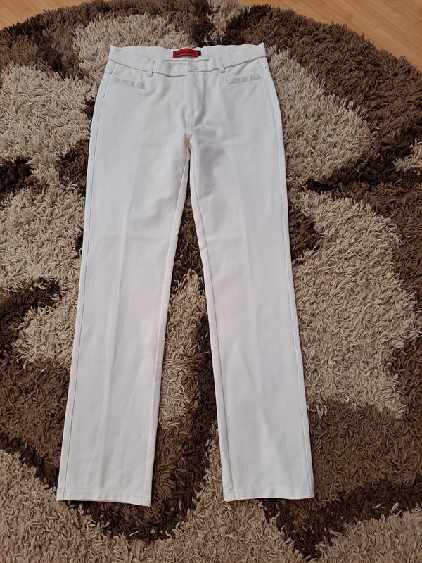 Довжина 105 см, погойда 77 см, напівобхват стегон 48 см, ширина по поясу 39 см, посадка спереду 27 см, ззаду 32 см, тканина трохи тягнеться