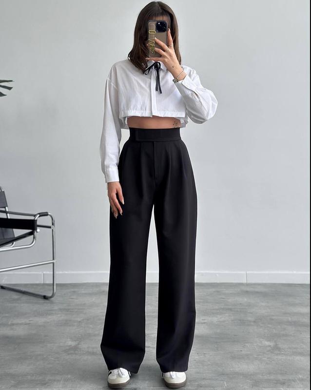Брюки🌿 Модель: 016 Размер: 42-44; 44-46, 46-48 Ткань: Турецкая Костюмка Цвета: Черный, Серый, Шоколад, Св. беж. Цена: 570 грн🏷 📌Замеры: Длина брюк: 103-105см В талии регулируются☝🏻 Брючки клеш, пояс на липучке+молния.