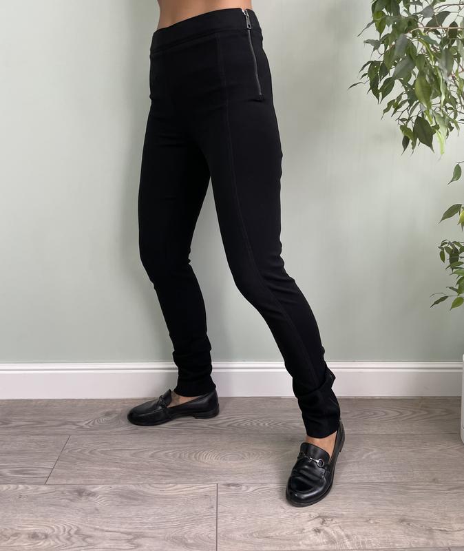В дуже гарному стані Знизу на штанках замочки (останні фото) Розмір 38 Заміри: Довжина 110 см Напівобхват у поясі 38 см Напівобхват бедер 47 см Тканина стрейч, тягнеться