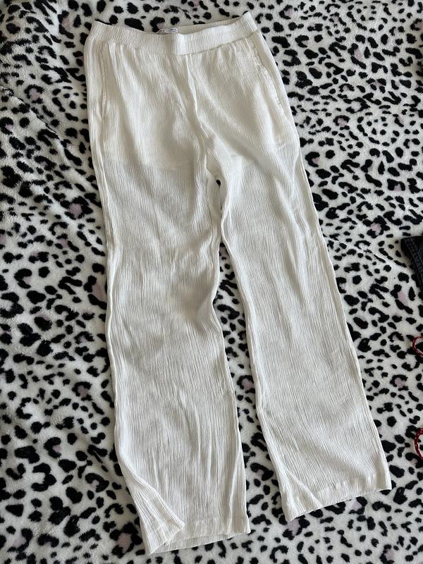 Штани літні Bershka Стан 9/10 Розмір М EU 38 На резинці Тягнуться Довжина - 96см Напівобхват стегон - 42 см Напівобхват талії - 35 см( тягнеться до 43-44 см