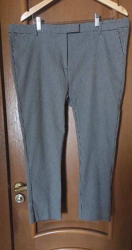 Брюки батального розміру в стані нових.Є бокові карманчики прорізні.Брюки завужені до низу і укорочені . довж. 87см нот 52см ноб 53см перед посадка 27см зад.посадка 42 завдяки складу тканини гарно тягнуться.