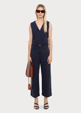 Штани з колекції Weekend Max Mara виконані з гладкої тканини. Крій злегка приталений в області стегон, вільні штанини, завищена талія та застібкою на ґудзики і блискавку, дві прорізні бічні кишені, дві кишені на ґудзиках ззаду. РОЗМІР: M ЗАМІРИ: довжина 89, пояс 41/43, поб 51/56, посадка 31, крок 64 вихід 23 СКЛАД: бавовна еластан СТАН: ідеальний ➖➖➖➖➖➖➖➖➖ Речі в наявності👗🧥👠 Фото на собі не роблю. 🙅♀️ Відправка: НП, Укрпошта📦 Всю необхідну інформацію надам😊