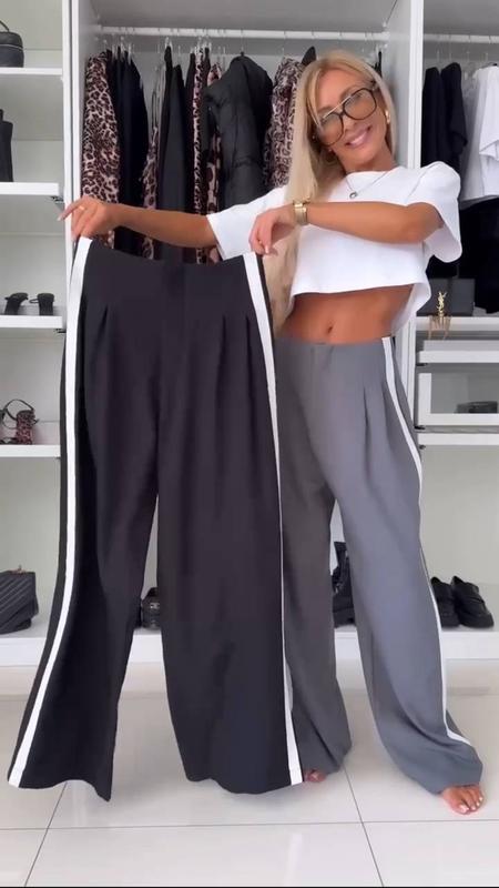 Брюки ⭐️ Колір : сірий, чорний. Розмір : 42-44; 46-48; 50-52 Тканина : турецька костюмка 🇹🇷 Брюки палацо - широкі, вільні , застібаються на блискавку . Розмір 42-44 ОБʼєм талії - 72 см ( висока посадка ) Обʼєм бедер - 120 см Довжина - 111 см Розмір 46-48 ОБʼєм талії - 78 см ( висока посадка ) Обʼєм бедер - 130 см Обєм штанини - 70 см Довжина - 113 см Розмір 46-48 ОБʼєм талії - 84 см ( висока посадка ) Обʼєм бедер - 138 см Обєм штанини - 72 см Довжина - 115 см