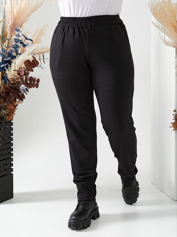 👑Брюки "Каминчики"⭐️ Модель: 102 ✔️Размер: 48-50, 52-54, 56-58, 60-62 ♥️Цена: 1180 грн 🍁Ткань: плотный трикотаж высокого качества 🟢Цвет: черный Брюки из качественного, плотного трикотажа. Ткань не скатывается, супер какие-то🔥 Декорированы камушками. Талия на резинке, высокая посадка. ✔️Замеры⬇️: 🟠48-50, ОС 105-112 см. ОТ 72/90 см. Длина изделия 103 см. Шаговый шов 77 см. 🟠52-54, ОС 113-120 см. ОТ 80/106 см. Длина изделия 104 см. Шаговый шов 77 см. 🟠56-58, ОС 120-128см. ОТ 84/118 см. Длина изделия 104 см. Шаговый шов 77 см. 🟠60-62, ОС 129-138 см. ОТ 88/122 см. Длина изделия 104 см. Шаговый шов 77 см.