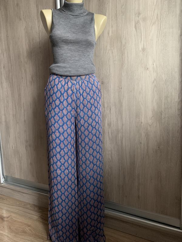 ☝️УВАГА!!!ЗНИЖКА ДІЄ ТІЛЬКИ ПО ПОВНІЙ ОПЛАТІ ОДРАЗУ НА КАРТУ!!!☝️ Класні брюки із натурального шовку,на підкладці,в поясі на резинці,дві кишені,широкі і прямі,стан нових. Напів об’єм в поясі 37(47)см Напів об’єм в стегнах 50см Глибина посадки 29(39)см Ширина штанини 34см Довжина по внутрішньому шву 82см Довжина виробу 110см Доставка: Відправляю Новою поштою та Укрпоштою після повної оплати на карту