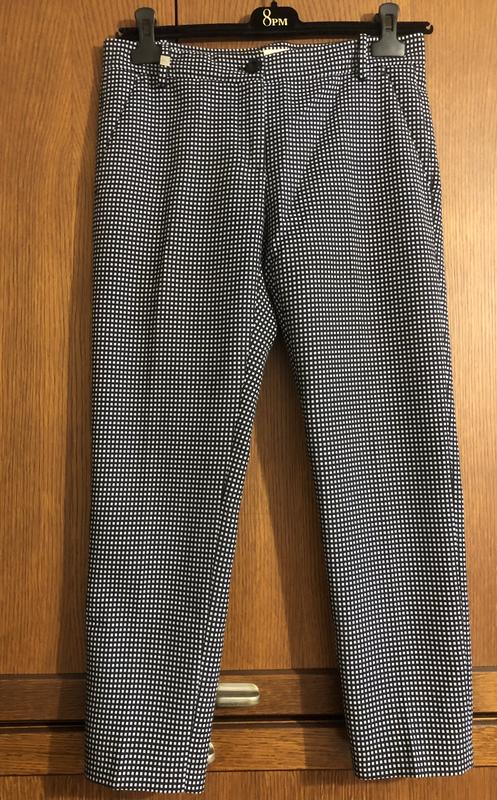Стильні брюки Pinko, колір темно- синій у білу кашку . Розмір 42 італійський ( 36/38 європейський). По талія 40/ посадка від канту 21/ по бедра 47/ довжина 90/ ширина штанини верх 20/ низ 17.