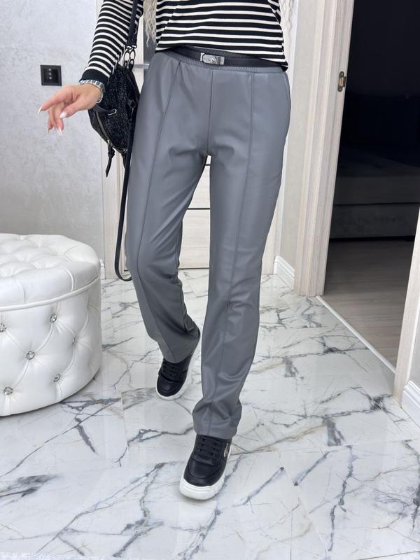 Материал: экокожа на меху. Красиво тянется. Цвет: черный, графит. Размер: 42-44, 46-48, 50-52, 54-56, 58-60. Без ременя. Мод: бурд