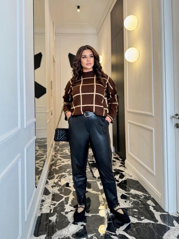 ☃️Утеплені штани❄️ Модель 304 Розмір: 48-50, 52-54, 56-58 Тканина: екошкіра на замші люкс якості Ціна: 1400 грн Колір: чорний, мокко Ремінь окремо: +100 грн (чорний, мокко) Стильні, утеплені штани виготовлені з екошкіри на замші, люкс якості. Тканина м'яка, еластична, приємна на дотик. Цікавий дизайн "тюльпанчик". Ремінь можна придбати окремо +100 грн (чорний, мокко) ⚪️Виміри: ⭕️48-50 Обхват стегон 106 см + 6-8 см розтяжність Обхват талії 74/90 см Довжина виробу 98 см ⭕️52-54 Обхват стегон 112 см + 6-8 см розтяжність Обхват талії 82/100 см Довжина виробу 99 см ⭕️56-58 Обхват стегон 126см + 6-8 см розтяжність Обхват талії 94/116 см Довжина виробу 100 см