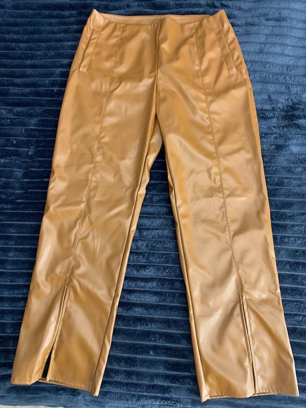Карамельные кожаные брюки