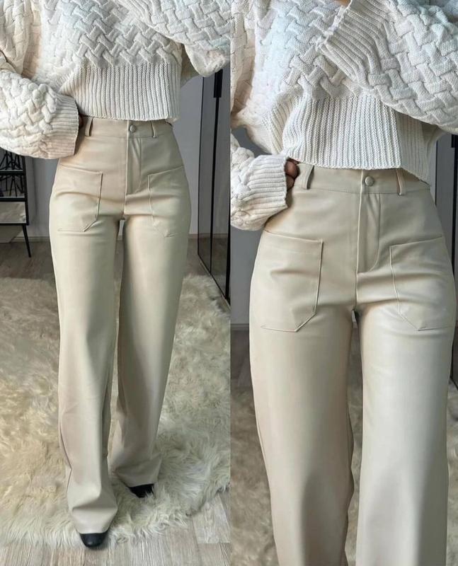 Шкіряні брюки Модель: 068-817 Розміри: 42-44; 46-48 Тканина: Якісна екошкіра. Колір: чорний, беж. Ціна: 525грн🏷 Пояс за бажанням + 50 грн🏷️