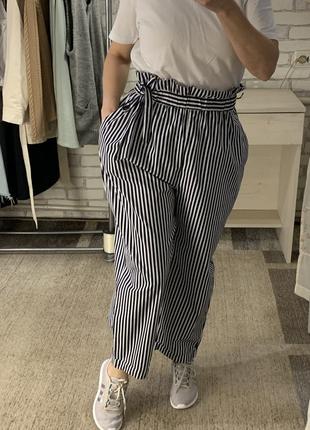 Штани в синю полоску-Zara-100% котон-розмір XL: по поясу 43( тягнеться!), стегна 60, довжина 95, шаг 58, посадка 41, ширина штанини біля промежини 34, ширина внизу 19 см